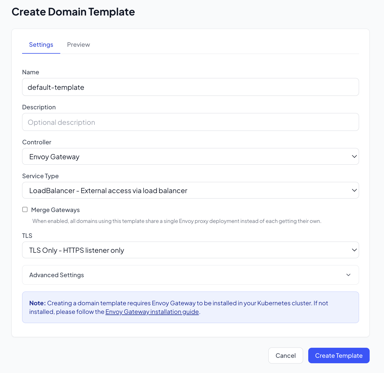 default-template) - Configure the template settings: