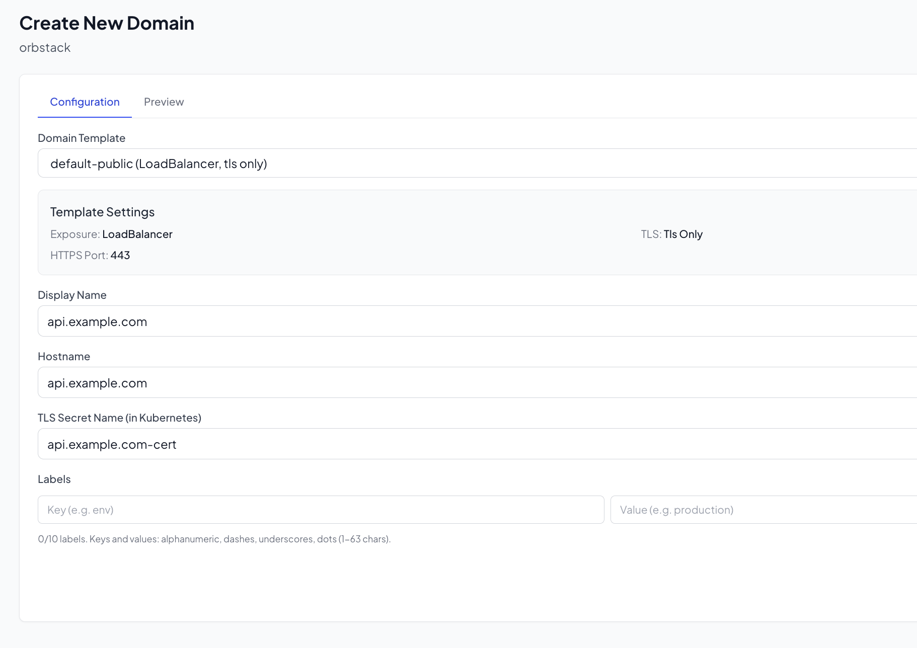 - Enter the domain hostname (e.g.,