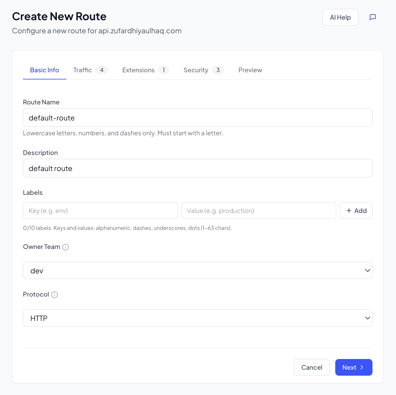 - Configure the route: